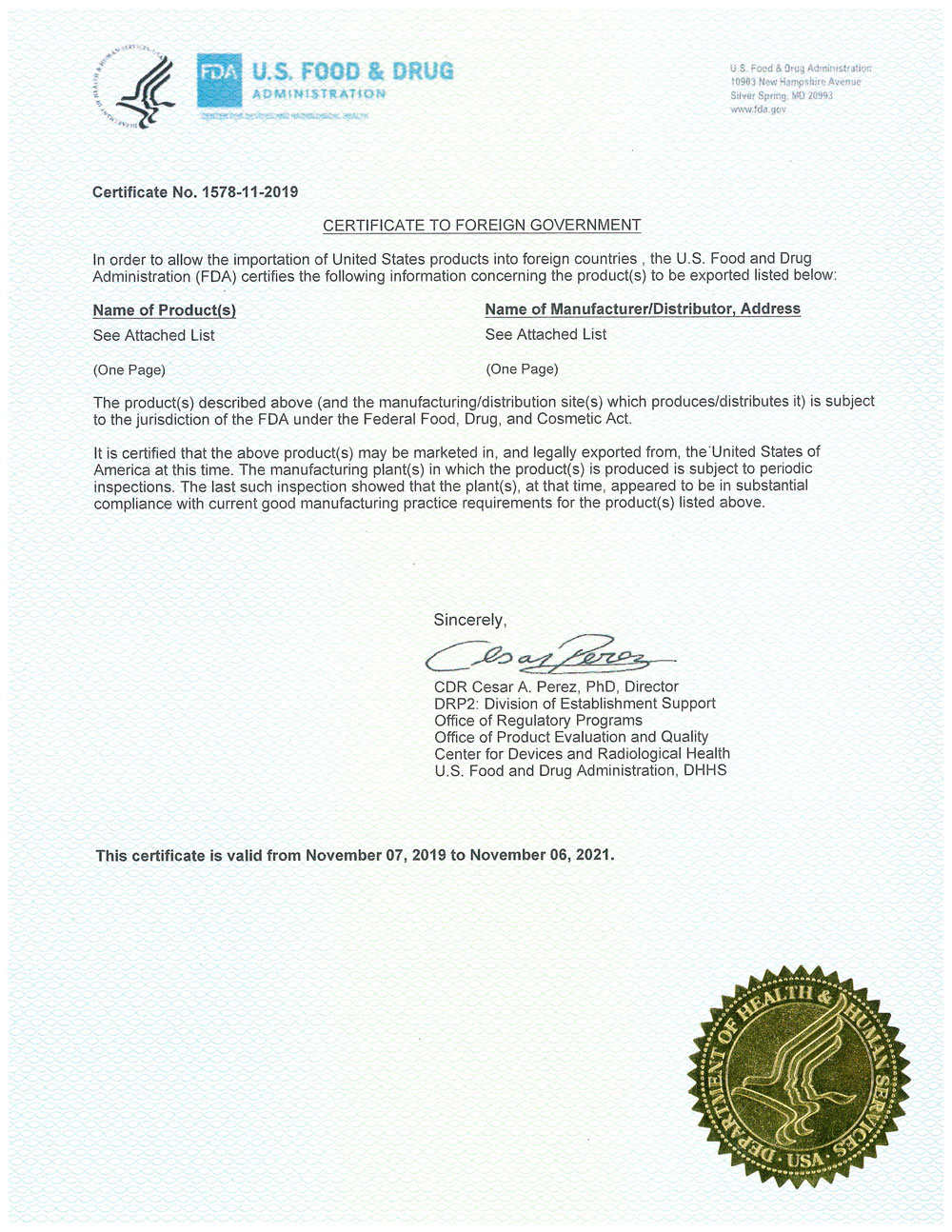 Regulatory Certificates